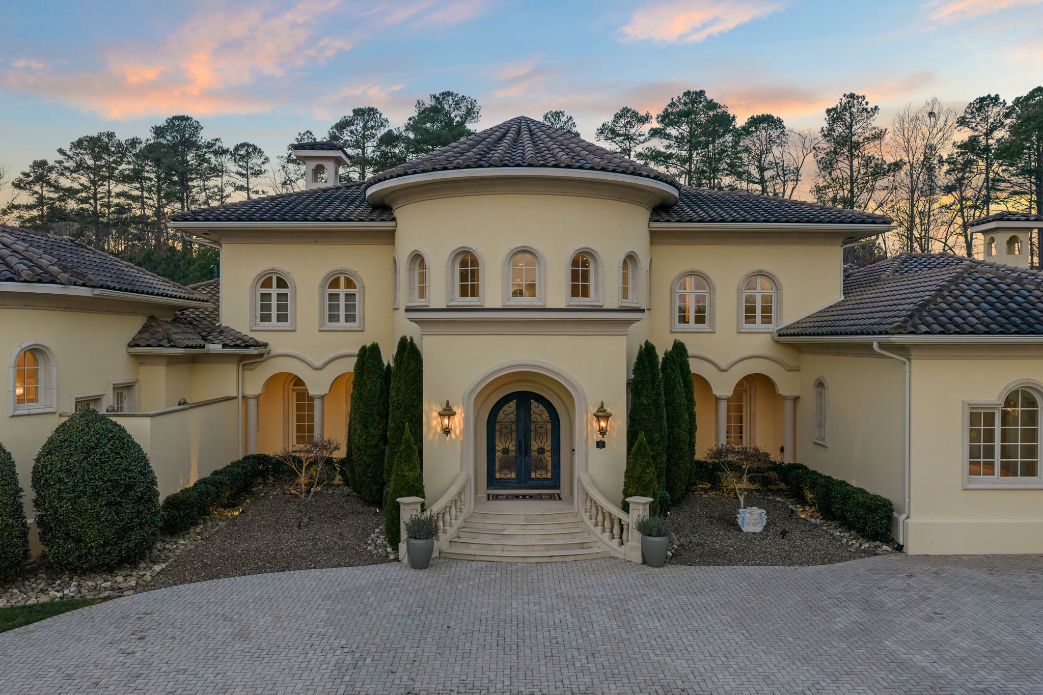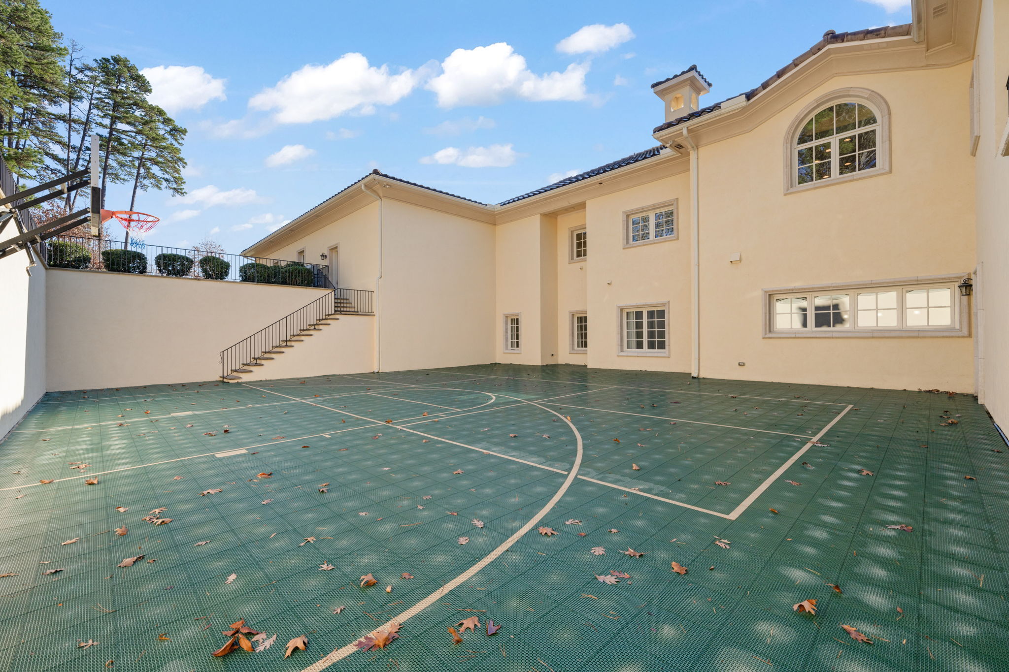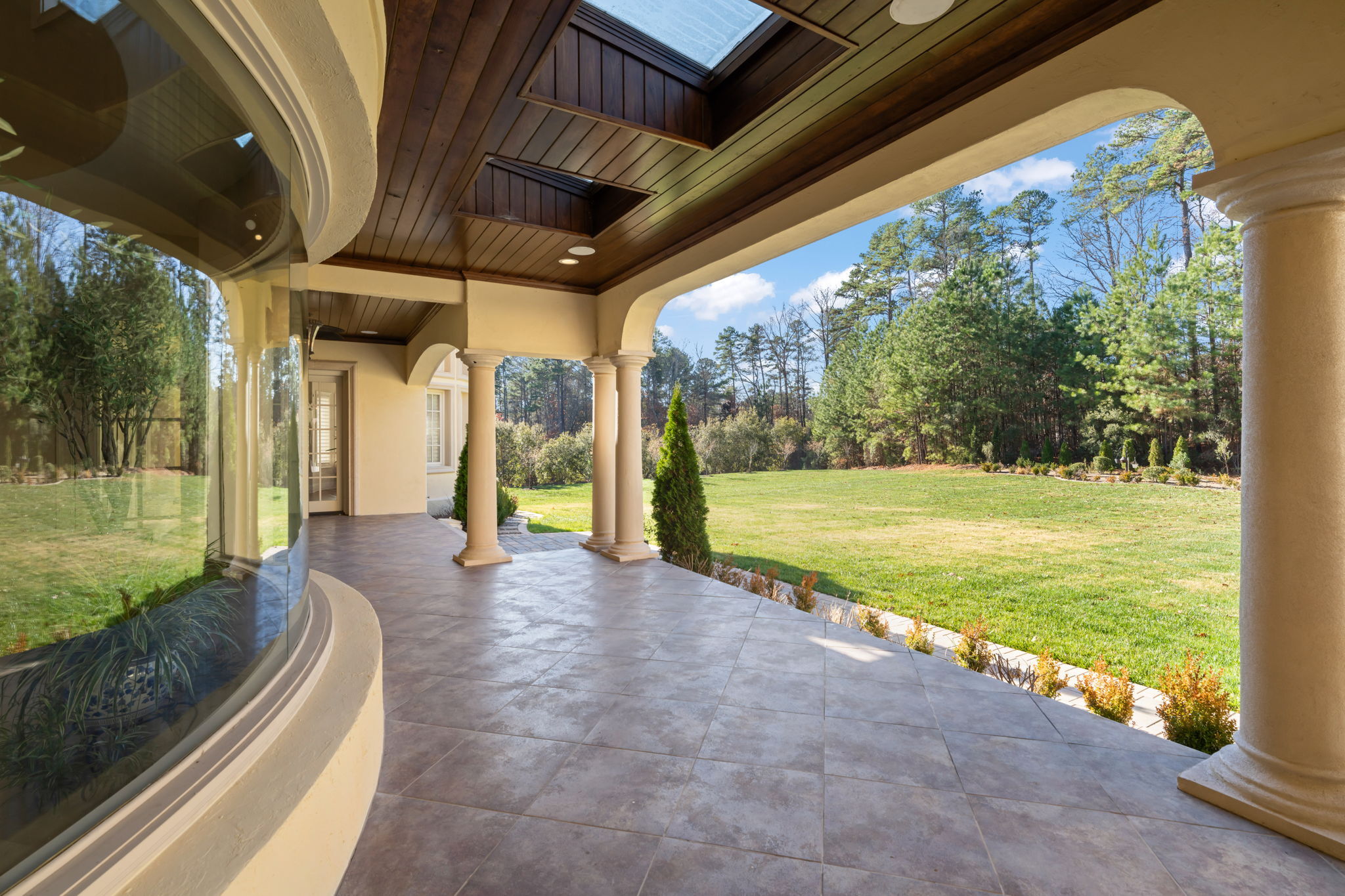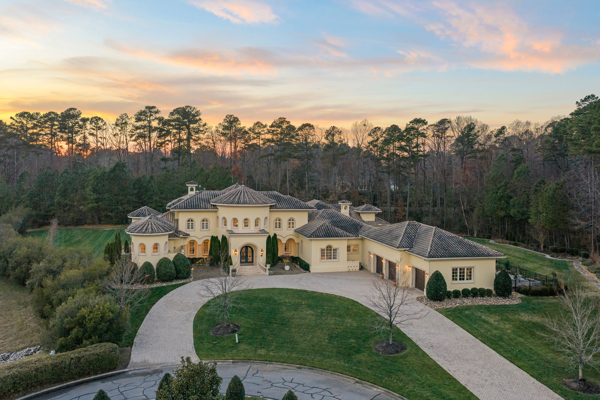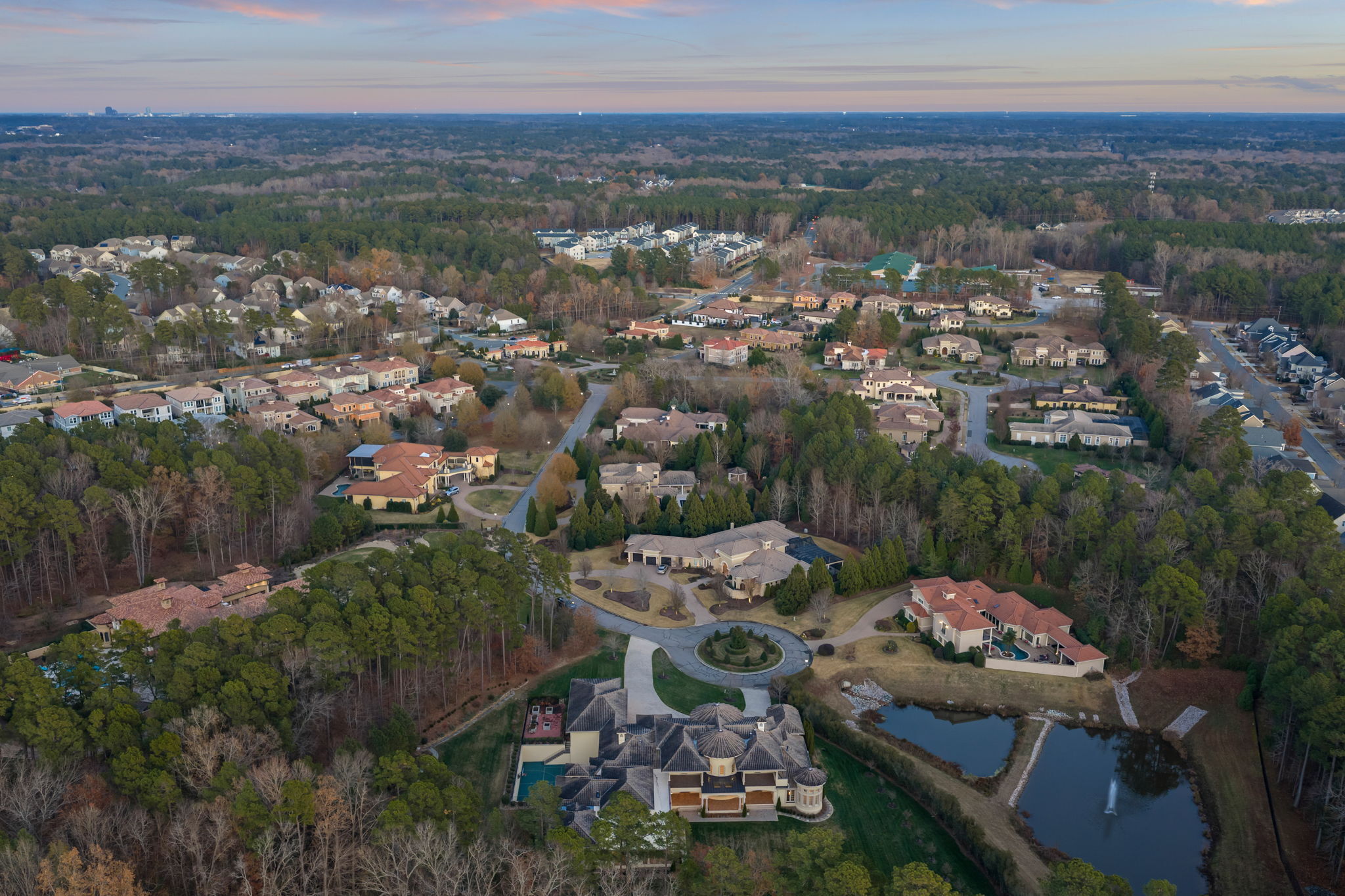 Discover refined elegance in this 13,341 sq. ft. Mediterranean-inspired estate on 3.31 private acres in Maida Vale, one of the Triangle’s premier gated communities. Offering rare privacy with unmatched convenience, this in-town estate sits minutes from RTP, RDU, Duke, UNC, world-class healthcare, and premier shopping. Built with ultra-durable concrete construction and a barrel-tile roof, it delivers lasting quality, energy efficiency, and peace of mind. Designed for both everyday luxury and large-scale entertaining, the home features an expansive covered veranda with an outdoor kitchen, fireplace, lounge area, and retractable window walls; a private sports court; a separate gym with steam shower; a movie theater and wine room; and a level rear yard envisioned for a custom pool (subject to approvals). Seamless indoor/outdoor flow creates an effortless setting for gatherings of any size. A fully self-contained lower level offers exceptional flexibility for extended family or multigenerational living, complete with its own kitchen, two bedrooms, large living area with fireplace, sports court access, and private elevator. The main level includes a secluded owner’s wing with study, formal and informal living spaces, a gourmet chef’s kitchen, floor-to-ceiling windows, guest suite, second office, and direct access to the veranda. Upstairs, three spacious guest suites—including a second primary—feature private balconies overlooking the grounds. Set at the end of a quiet cul-de-sac with a circular drive and covered portico, the home welcomes you with dramatic staircases and clear views to the lush backyard. With its rare acreage, solid construction, low-maintenance design, and resort-style amenities, this residence represents exceptional value among the Triangle’s luxury estates. Conceptual pool rendering is AI-generated.