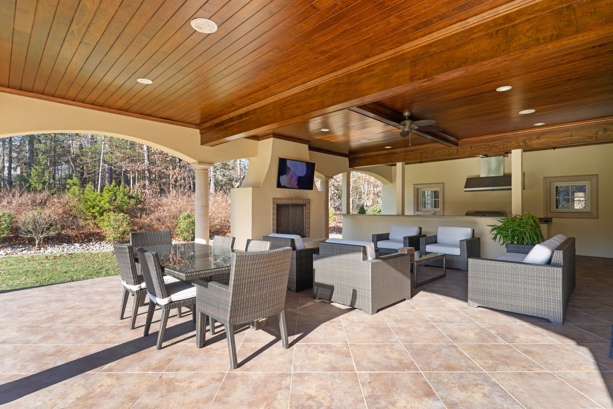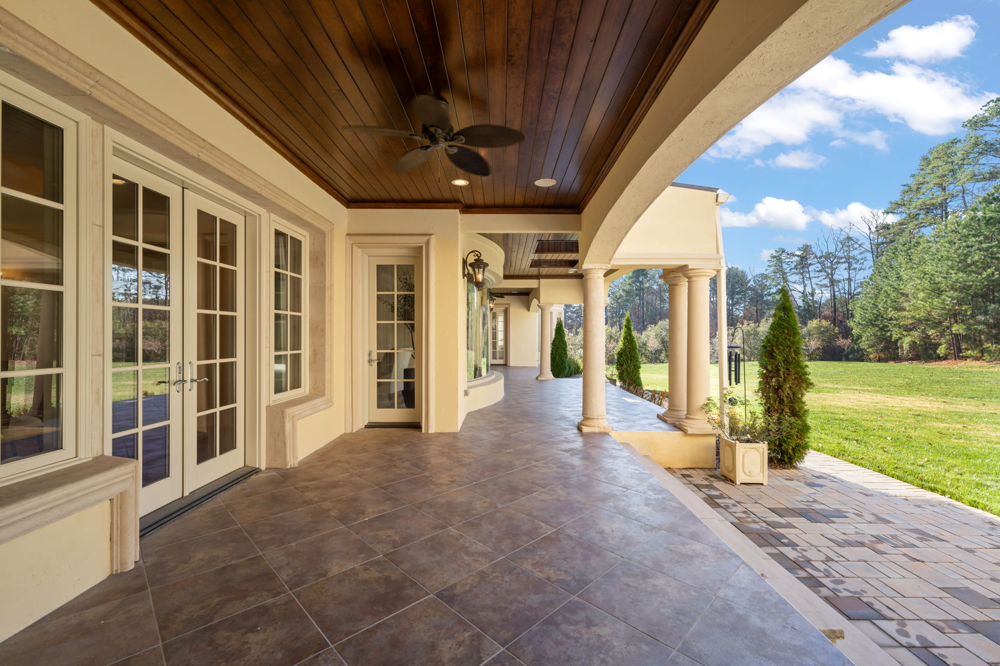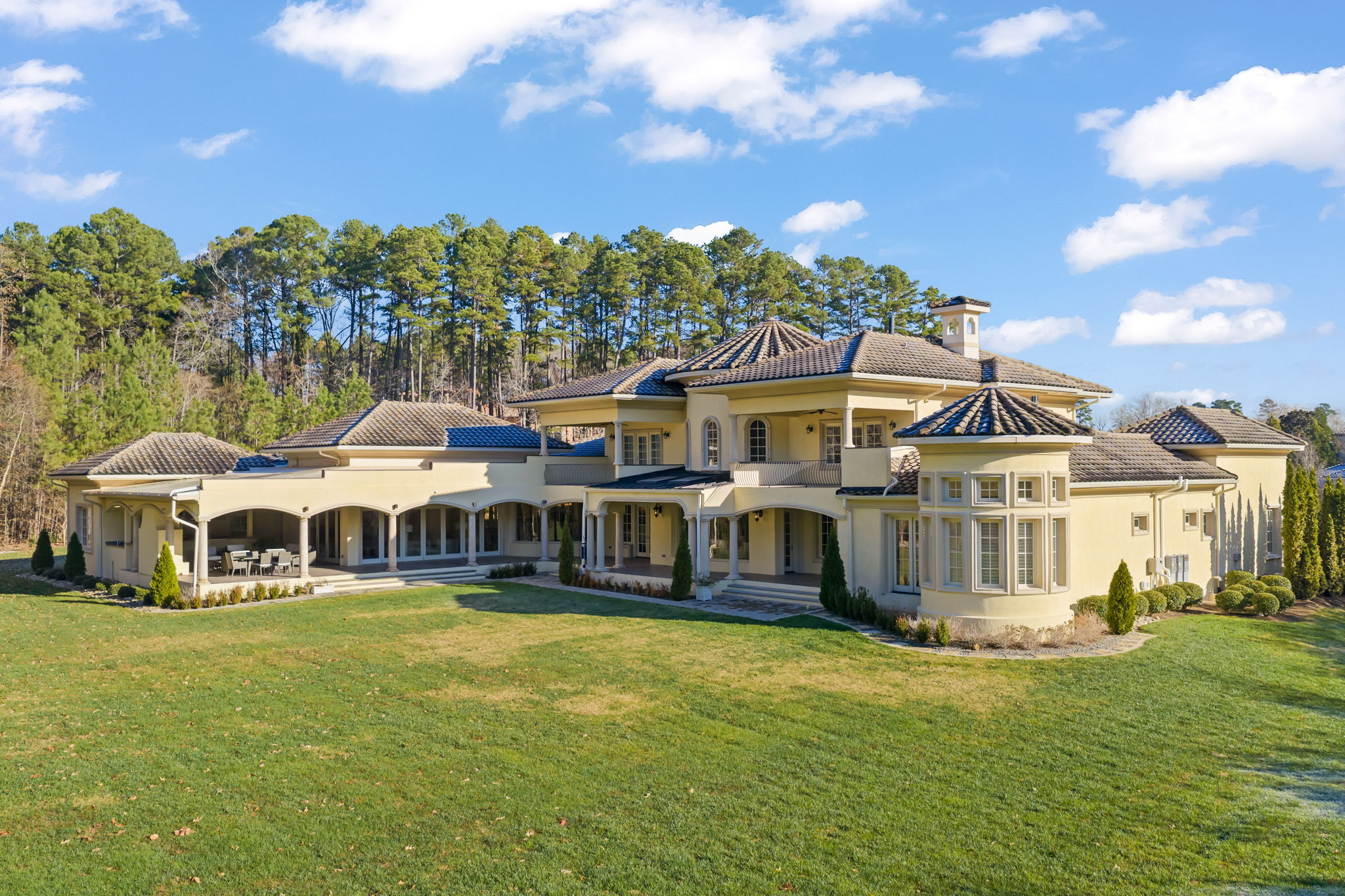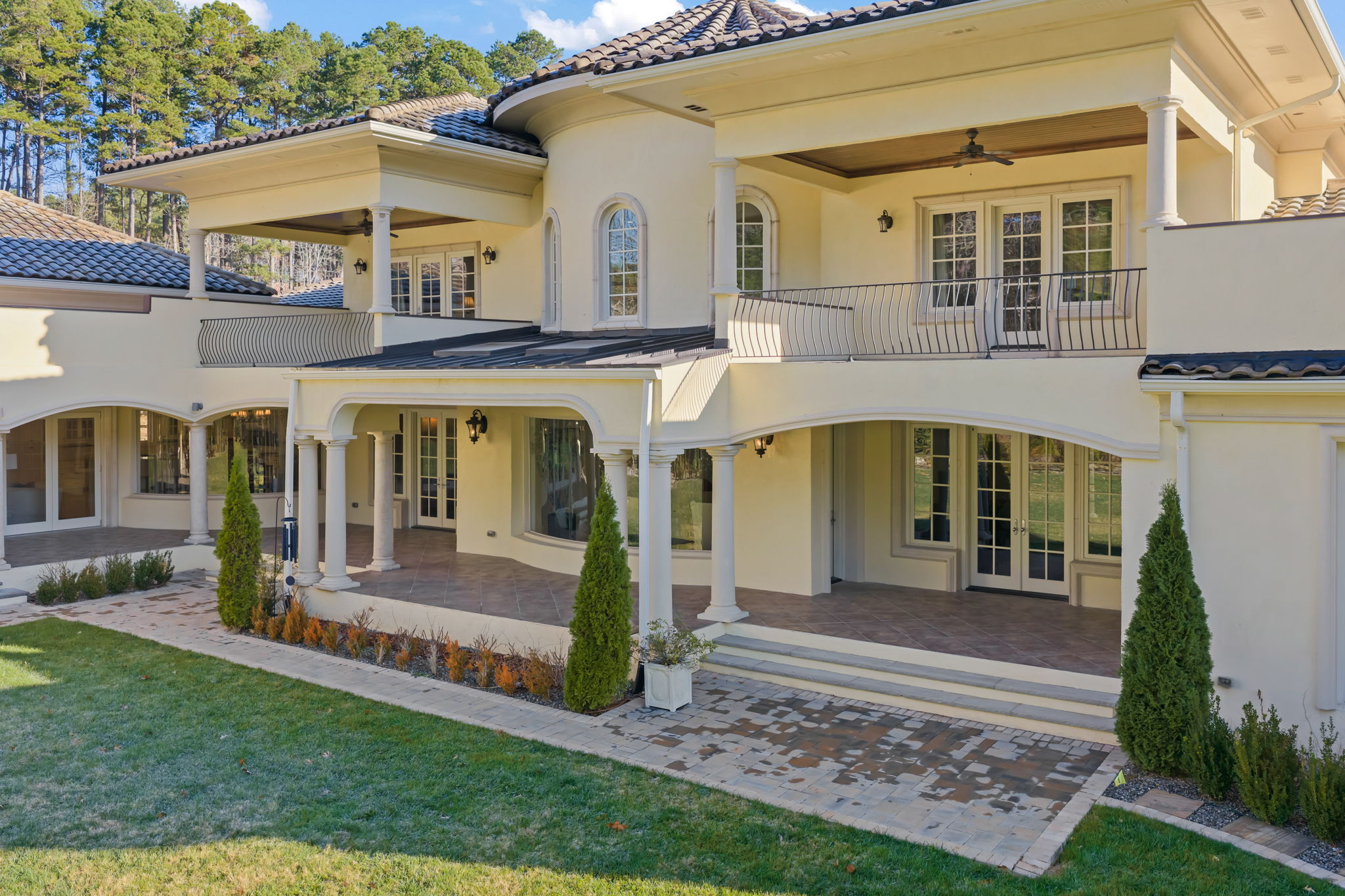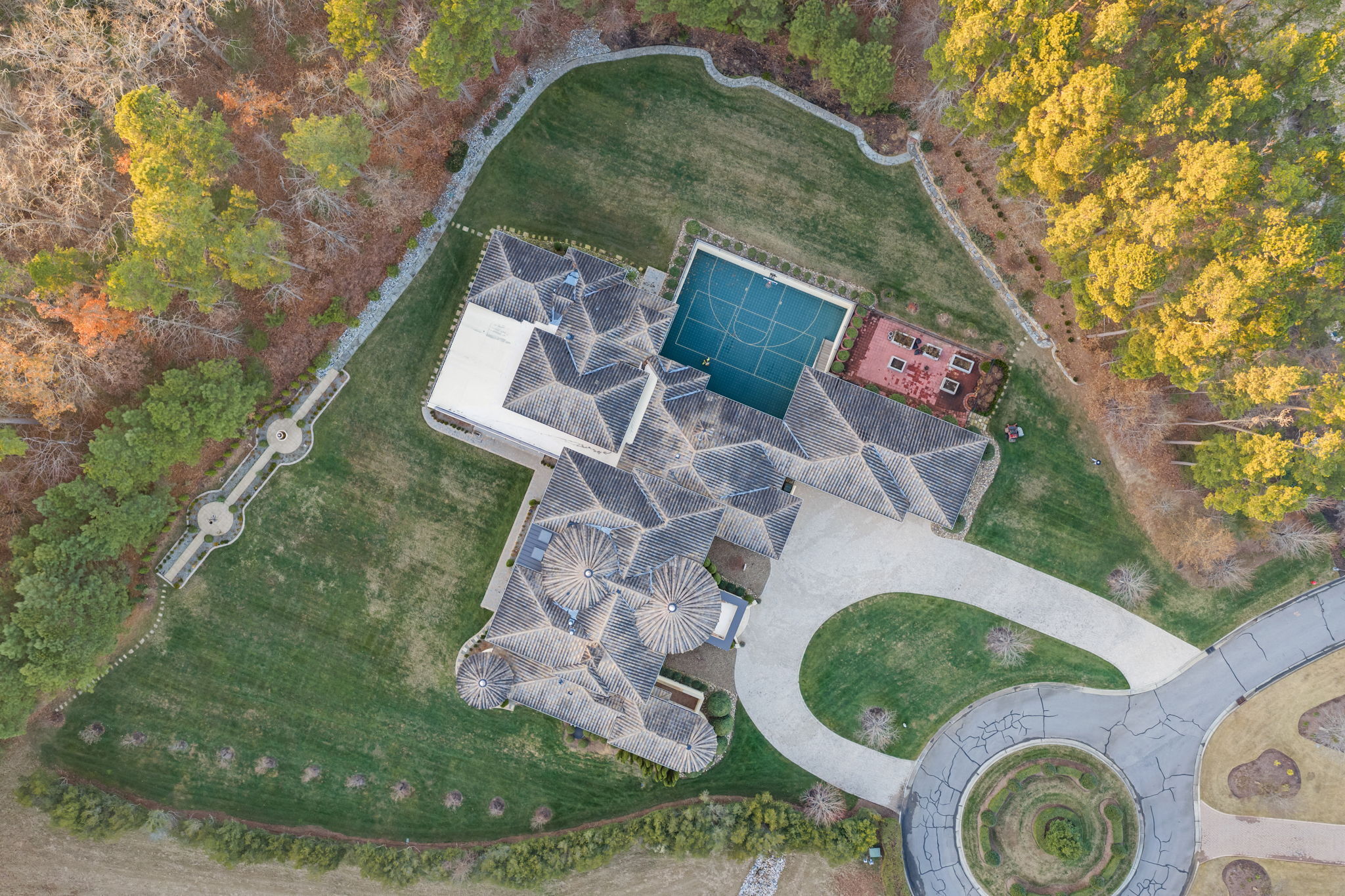 Discover refined elegance in this 13,341 sq. ft. Mediterranean-inspired estate on 3.31 private acres in Maida Vale, one of the Triangle’s premier gated communities. Offering rare privacy with unmatched convenience, this in-town estate sits minutes from RTP, RDU, Duke, UNC, world-class healthcare, and premier shopping. Built with ultra-durable concrete construction and a barrel-tile roof, it delivers lasting quality, energy efficiency, and peace of mind. Designed for both everyday luxury and large-scale entertaining, the home features an expansive covered veranda with an outdoor kitchen, fireplace, lounge area, and retractable window walls; a private sports court; a separate gym with steam shower; a movie theater and wine room; and a level rear yard envisioned for a custom pool (subject to approvals). Seamless indoor/outdoor flow creates an effortless setting for gatherings of any size. A fully self-contained lower level offers exceptional flexibility for extended family or multigenerational living, complete with its own kitchen, two bedrooms, large living area with fireplace, sports court access, and private elevator. The main level includes a secluded owner’s wing with study, formal and informal living spaces, a gourmet chef’s kitchen, floor-to-ceiling windows, guest suite, second office, and direct access to the veranda. Upstairs, three spacious guest suites—including a second primary—feature private balconies overlooking the grounds. Set at the end of a quiet cul-de-sac with a circular drive and covered portico, the home welcomes you with dramatic staircases and clear views to the lush backyard. With its rare acreage, solid construction, low-maintenance design, and resort-style amenities, this residence represents exceptional value among the Triangle’s luxury estates. Conceptual pool rendering is AI-generated.
