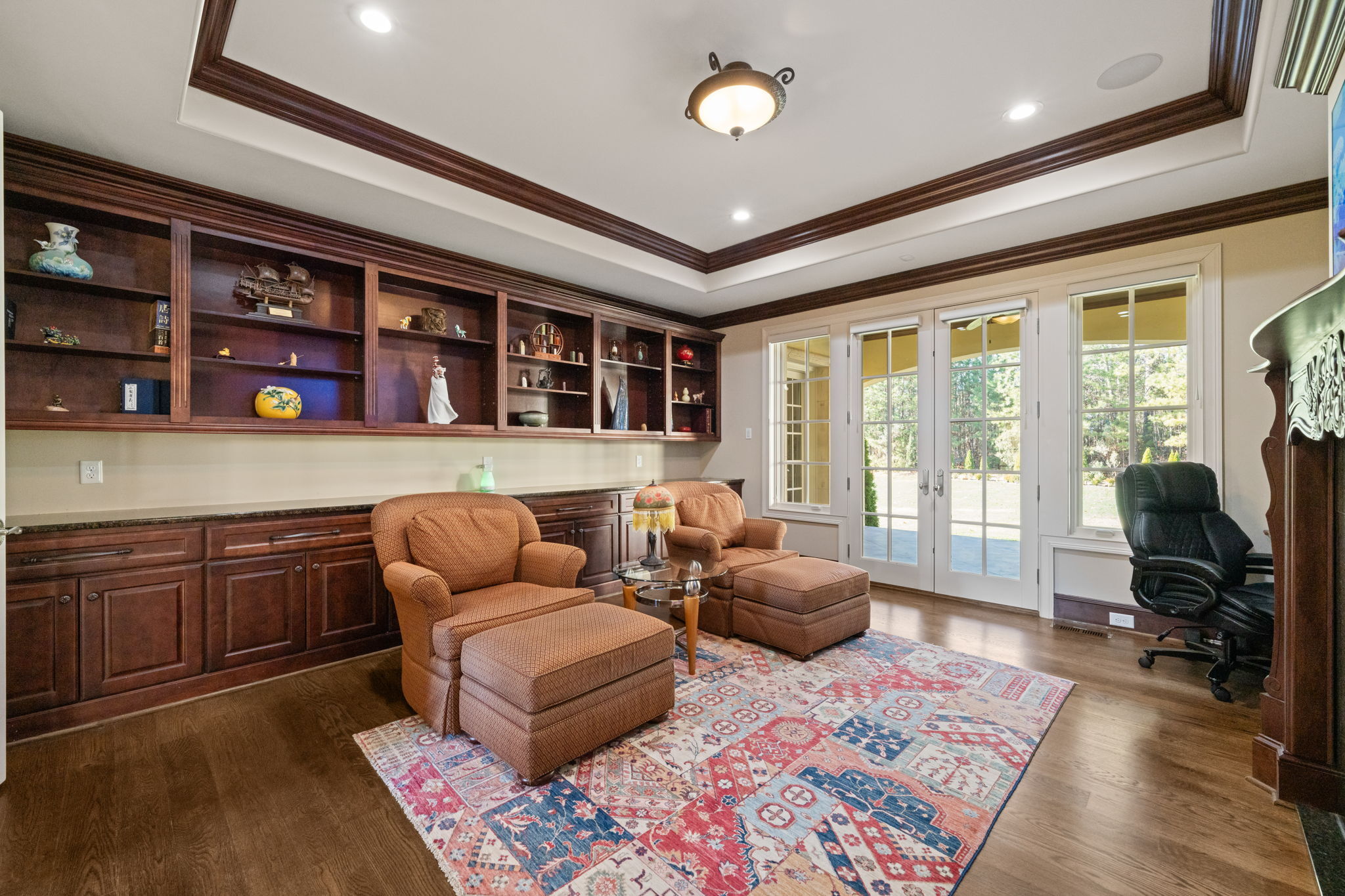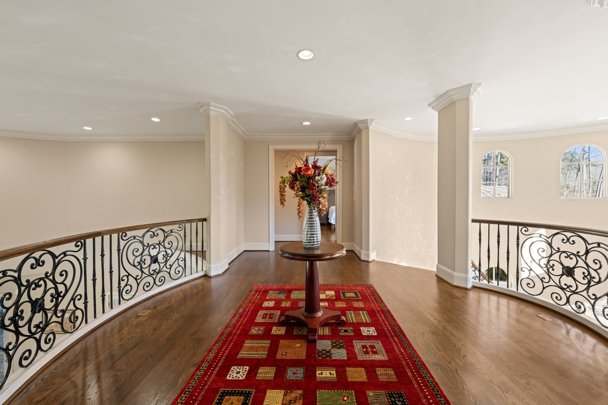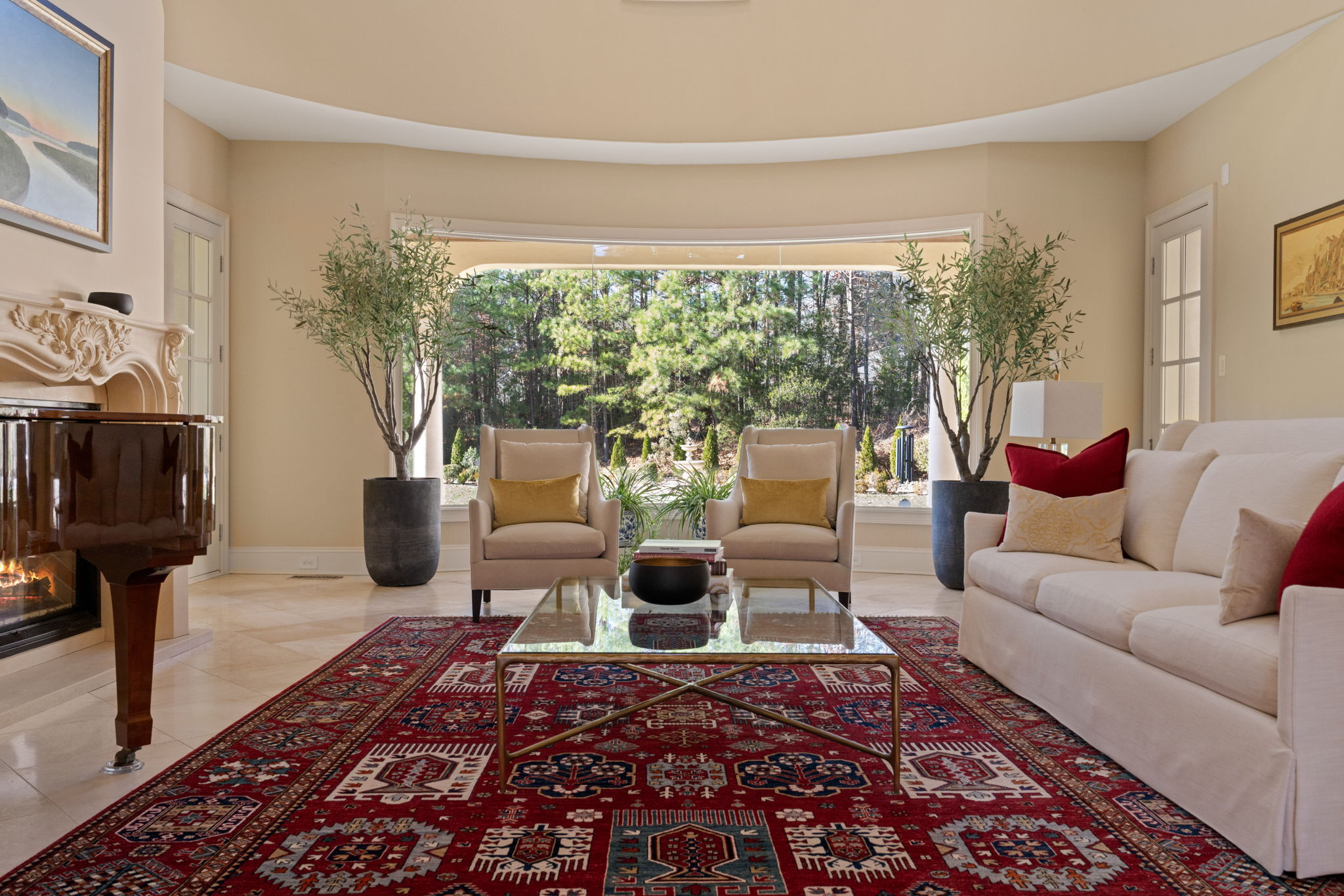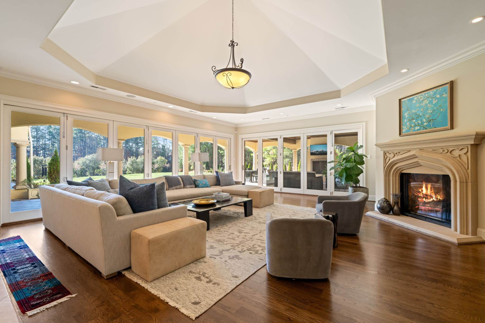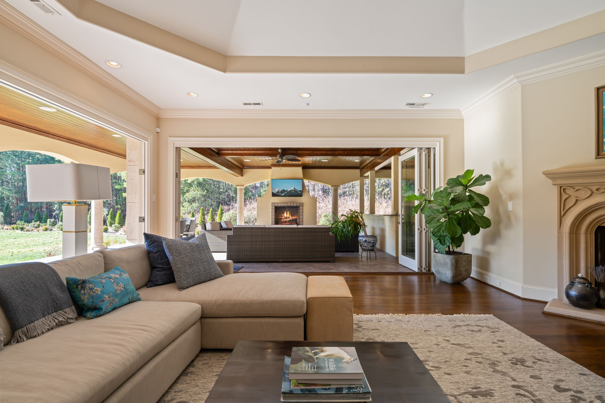 Discover refined elegance in this 13,341 sq. ft. Mediterranean-inspired estate on 3.31 private acres in Maida Vale, one of the Triangle’s premier gated communities. Offering rare privacy with unmatched convenience, this in-town estate sits minutes from RTP, RDU, Duke, UNC, world-class healthcare, and premier shopping. Built with ultra-durable concrete construction and a barrel-tile roof, it delivers lasting quality, energy efficiency, and peace of mind. Designed for both everyday luxury and large-scale entertaining, the home features an expansive covered veranda with an outdoor kitchen, fireplace, lounge area, and retractable window walls; a private sports court; a separate gym with steam shower; a movie theater and wine room; and a level rear yard envisioned for a custom pool (subject to approvals). Seamless indoor/outdoor flow creates an effortless setting for gatherings of any size. A fully self-contained lower level offers exceptional flexibility for extended family or multigenerational living, complete with its own kitchen, two bedrooms, large living area with fireplace, sports court access, and private elevator. The main level includes a secluded owner’s wing with study, formal and informal living spaces, a gourmet chef’s kitchen, floor-to-ceiling windows, guest suite, second office, and direct access to the veranda. Upstairs, three spacious guest suites—including a second primary—feature private balconies overlooking the grounds. Set at the end of a quiet cul-de-sac with a circular drive and covered portico, the home welcomes you with dramatic staircases and clear views to the lush backyard. With its rare acreage, solid construction, low-maintenance design, and resort-style amenities, this residence represents exceptional value among the Triangle’s luxury estates. Conceptual pool rendering is AI-generated.